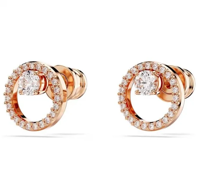 Inspired by the wondrous beauty of nature, these gorgeous earrings are blooming with fine crystals. Set on 18k gold finish, the pink design features five petals artfully arranged around a central stone with a deeper hue. A captivating design for floral days.