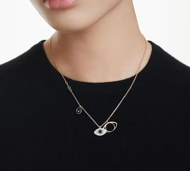 Elevate your style with the mystical colours of the night sky. This Sublima pendant is 18k rose gold plated and embellished with a pavé of crystals in dark tones. A single prong-set pearl also sits on the chain adding an extra flourish of luxury. Wear this light-reflecting piece at any time of day or night.