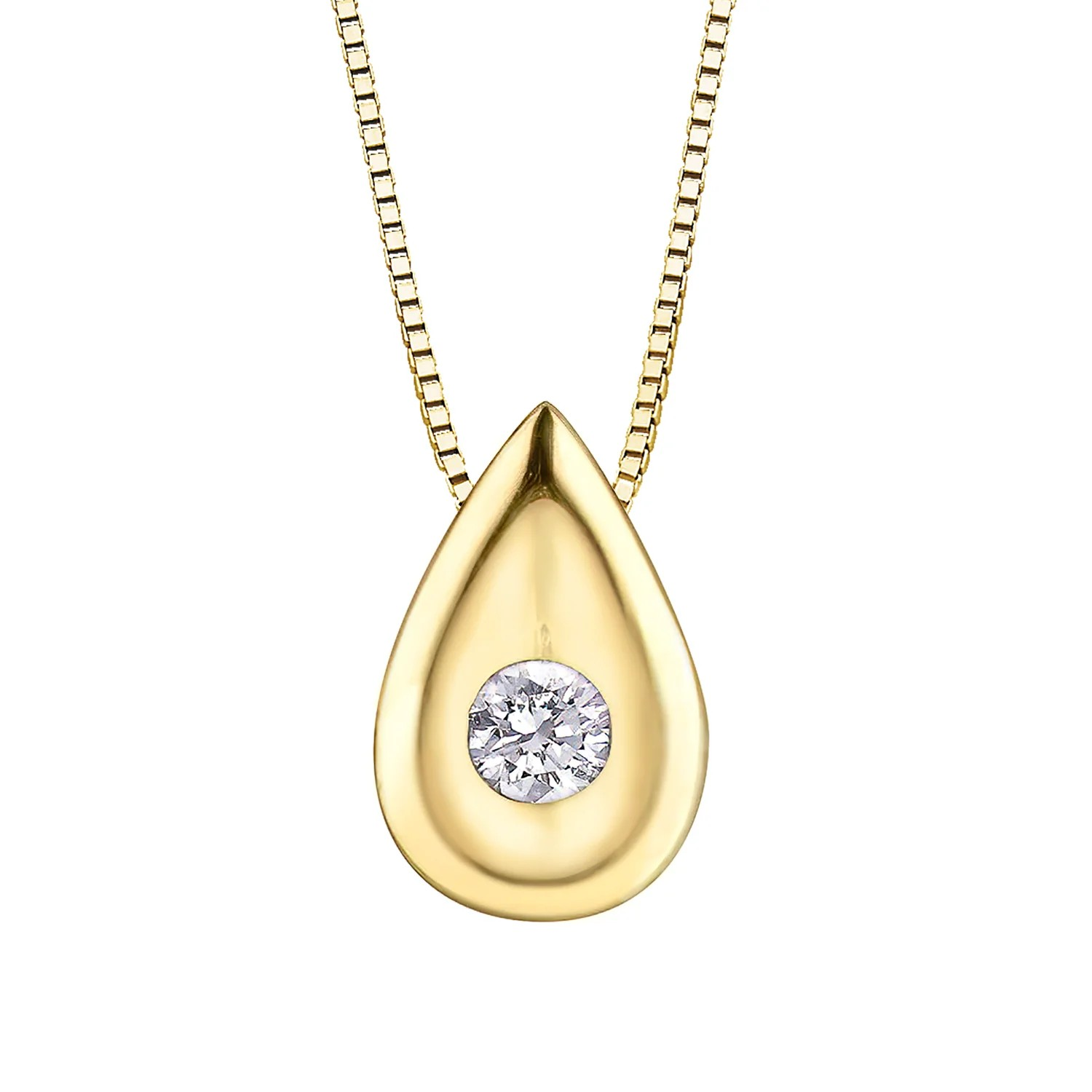 Delicate rain droplet inspired outline yellow gold diamond pendant. Perfect for everyday pendant stacking.
